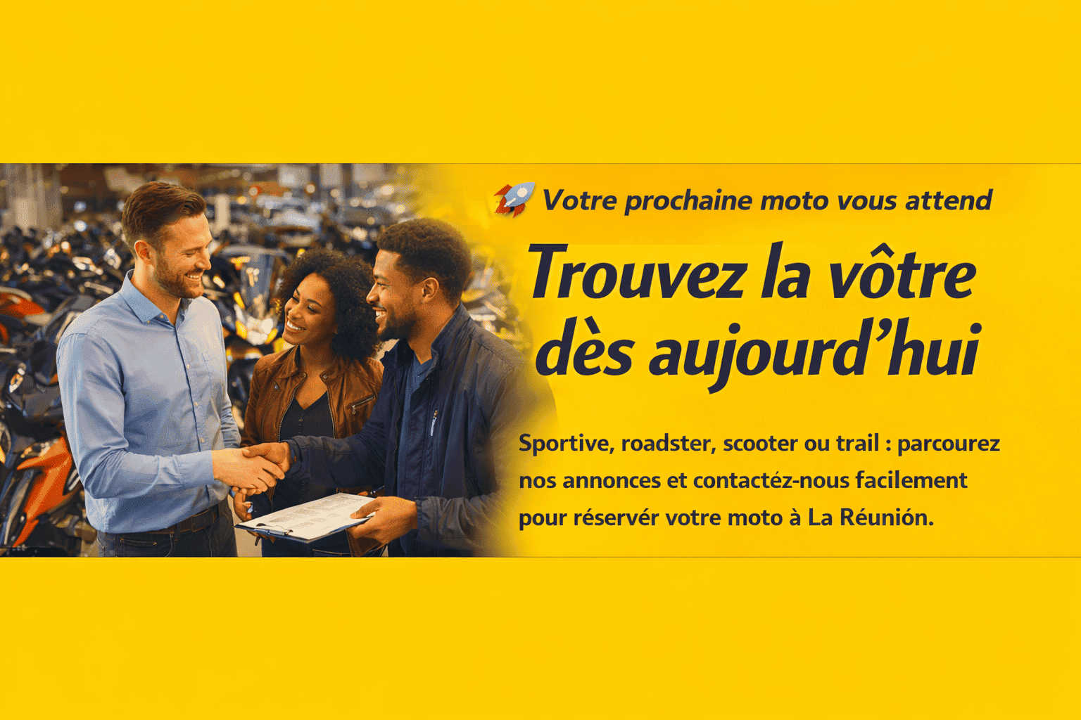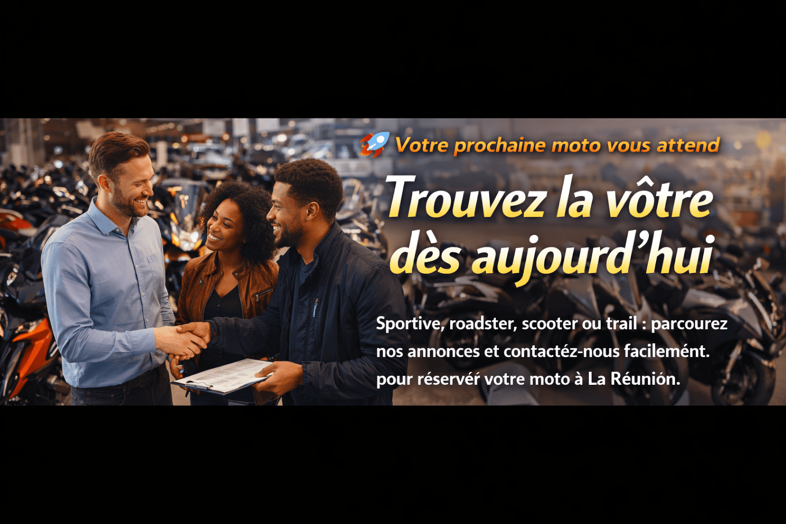 Choisissez la moto de votre choix et verser des arrhes ensuite le solde à la livraison après essayage.